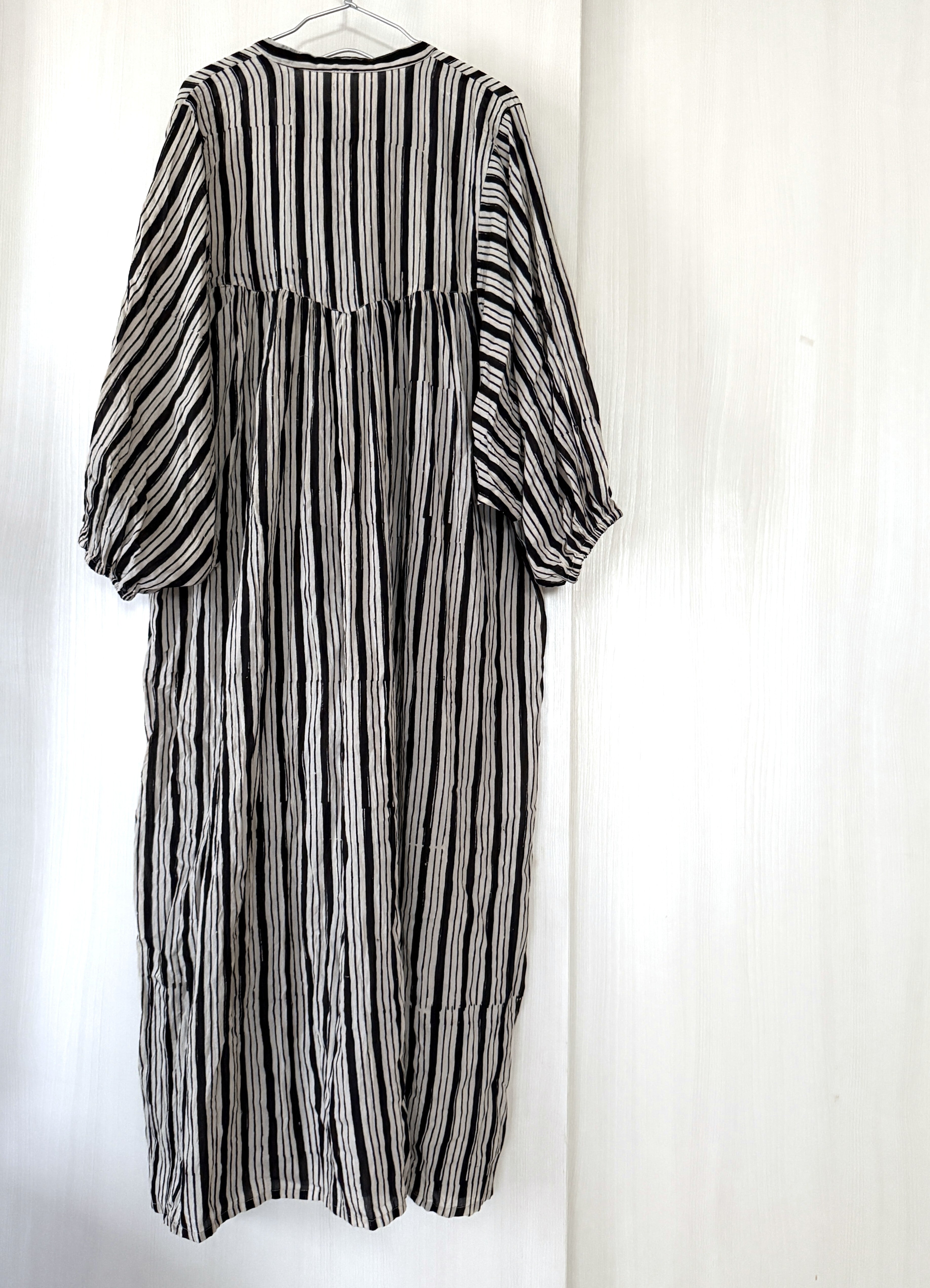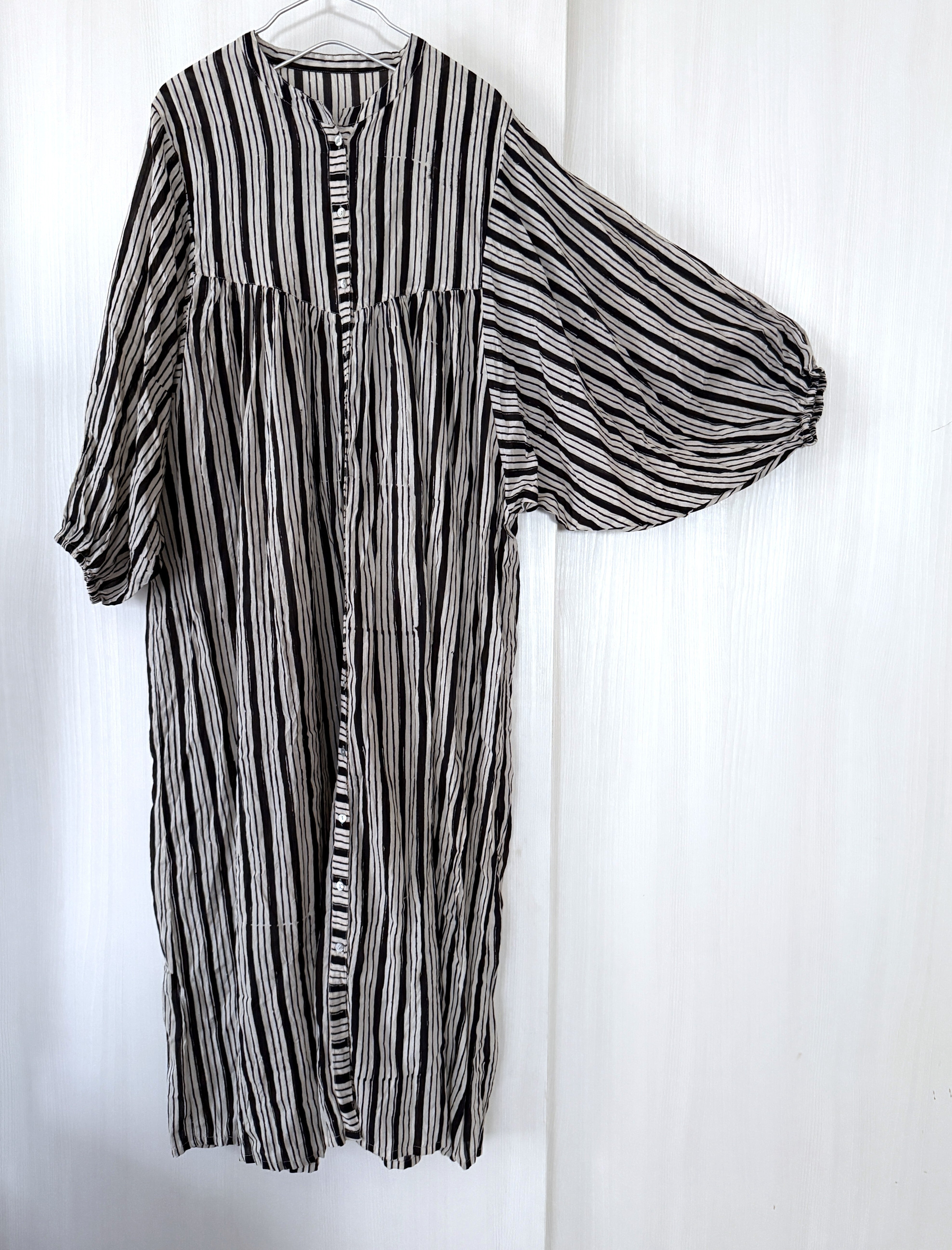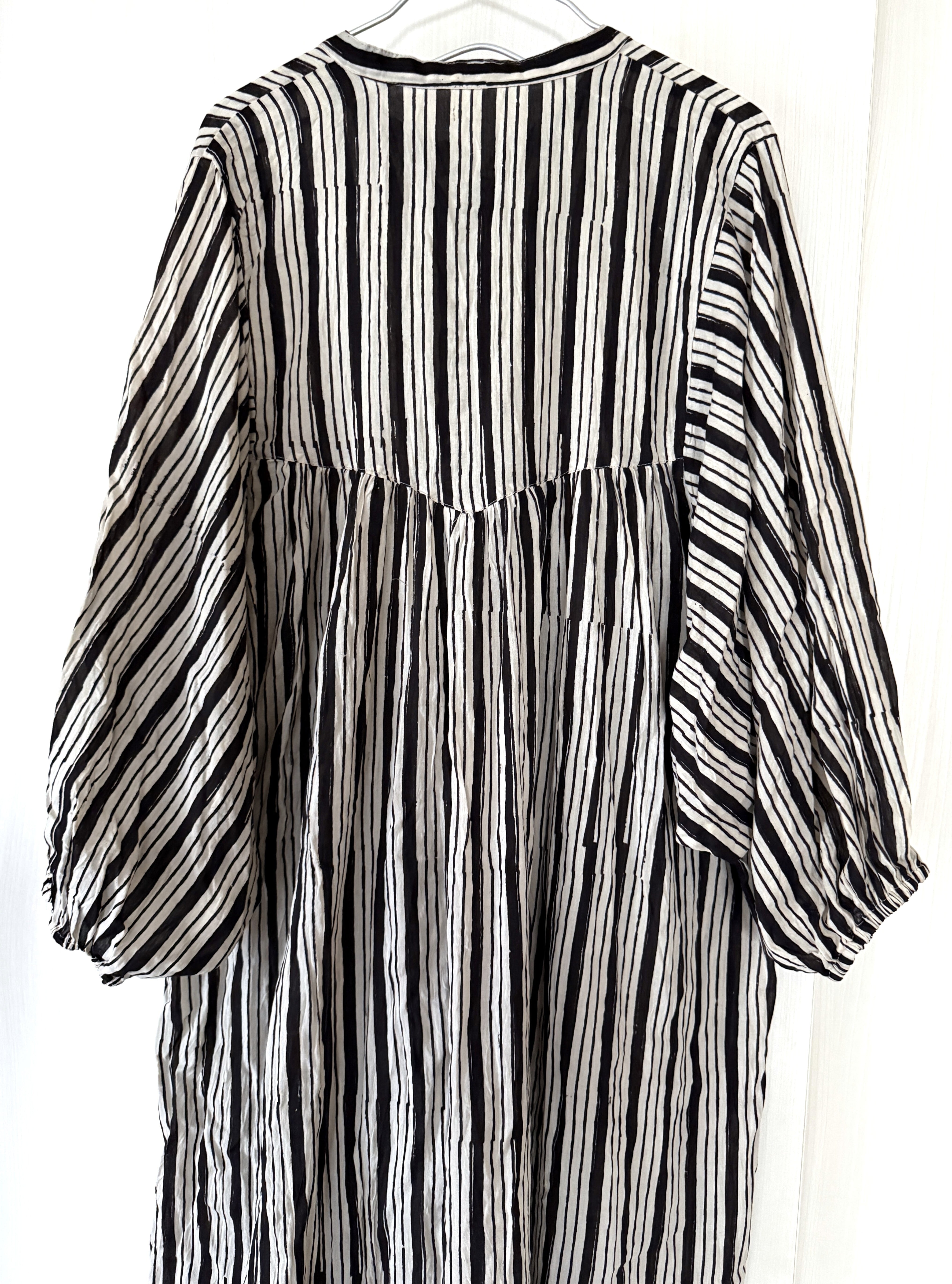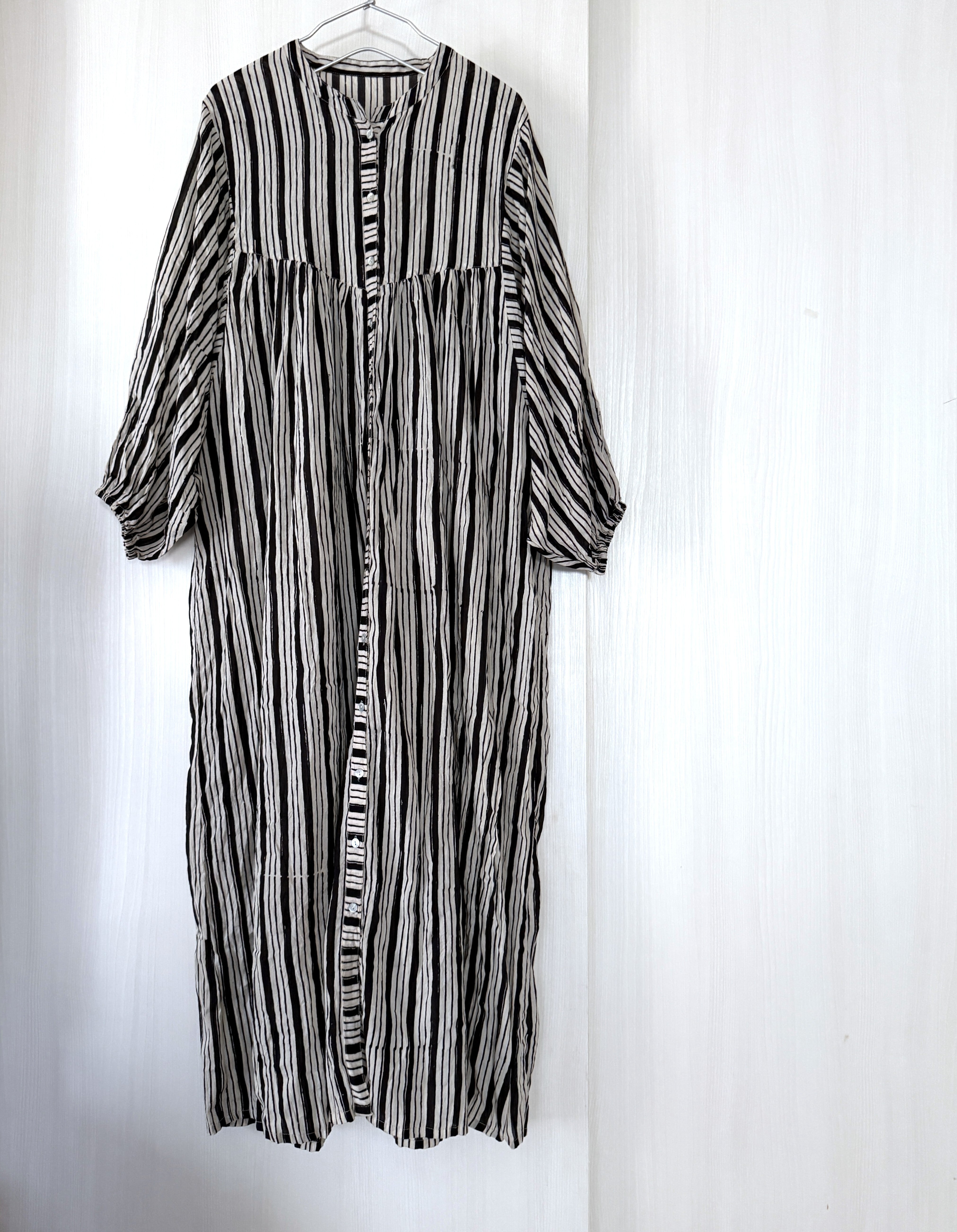 Block Print Cotton TRIP ワンピース◎太細mixストライプ