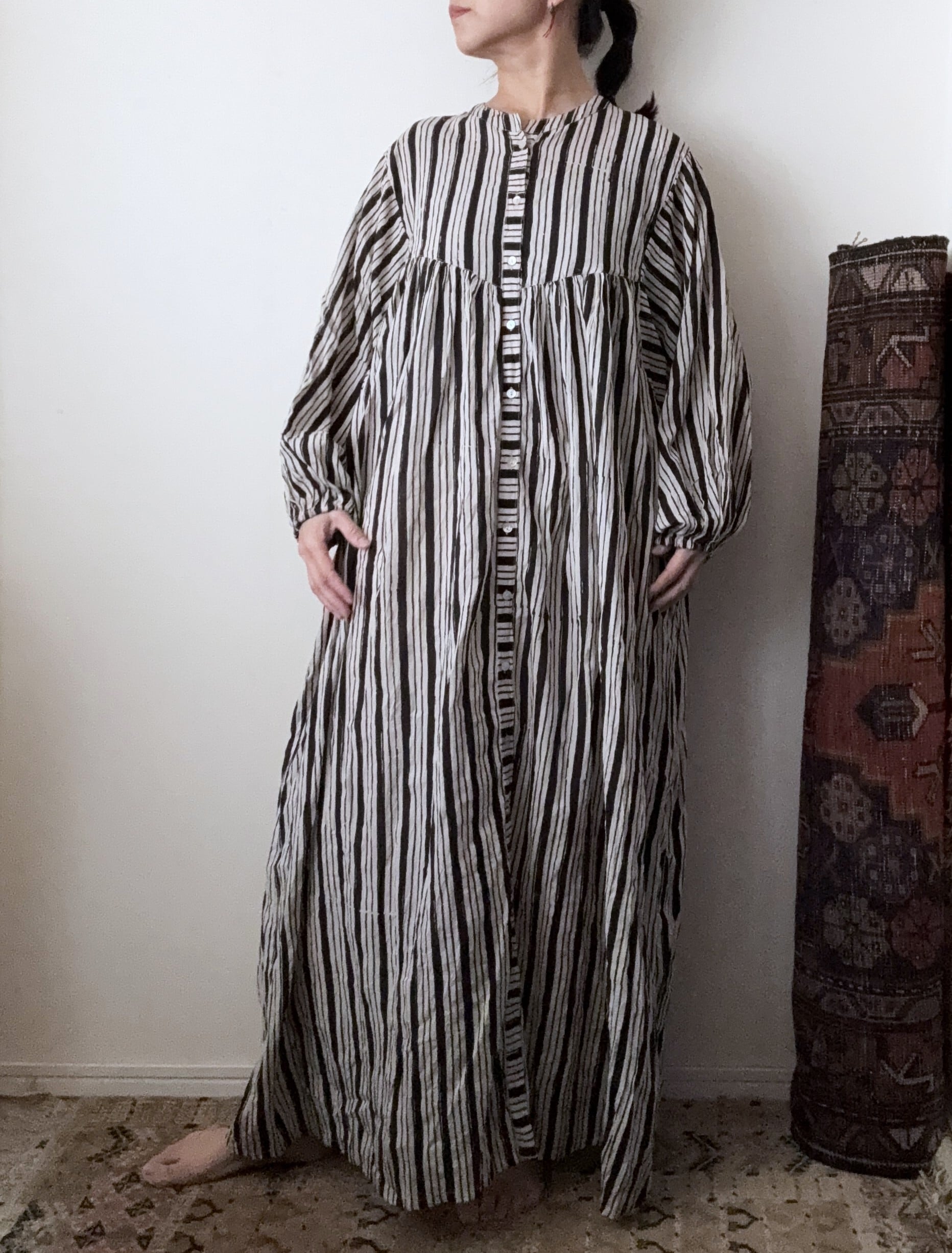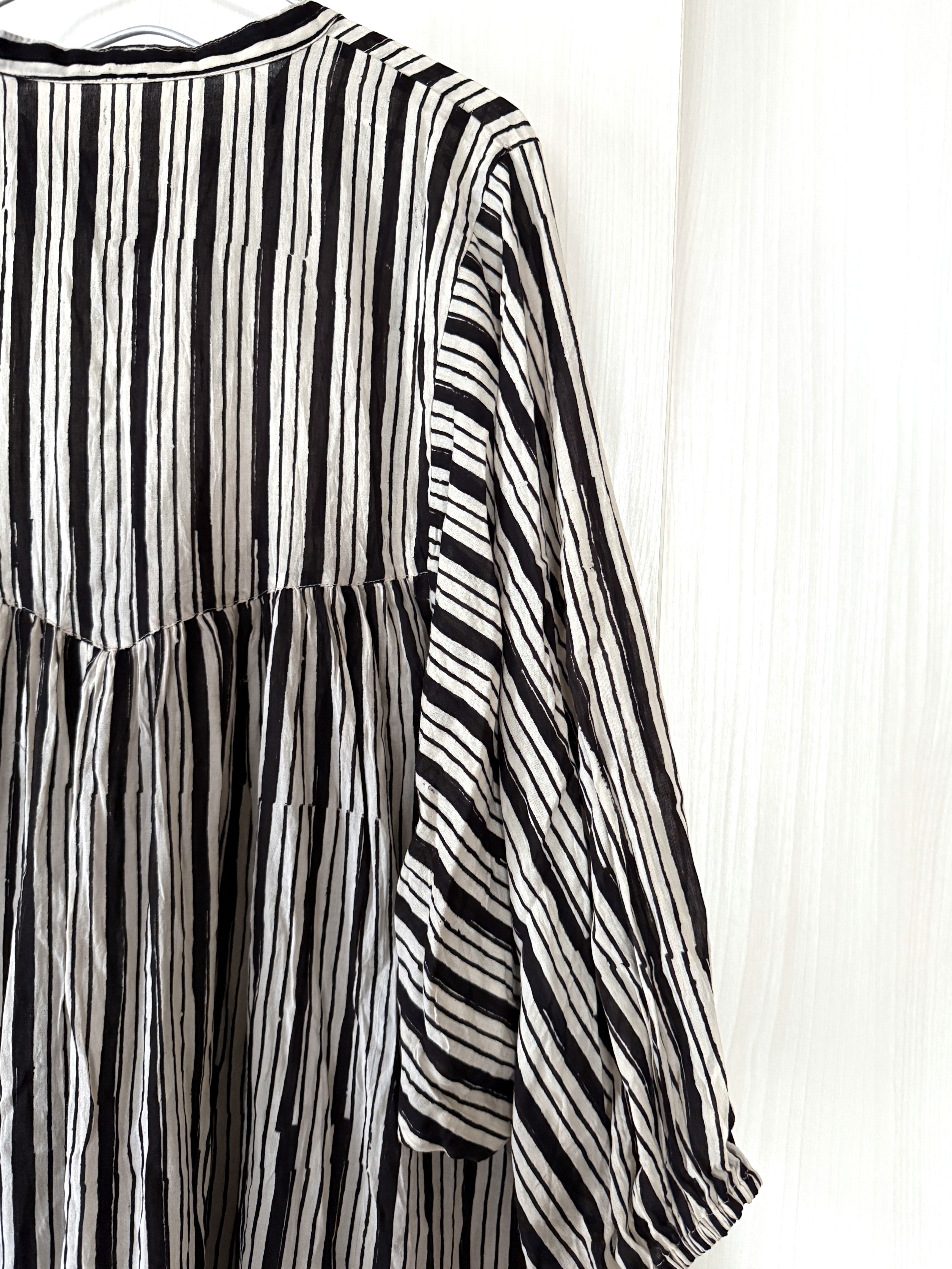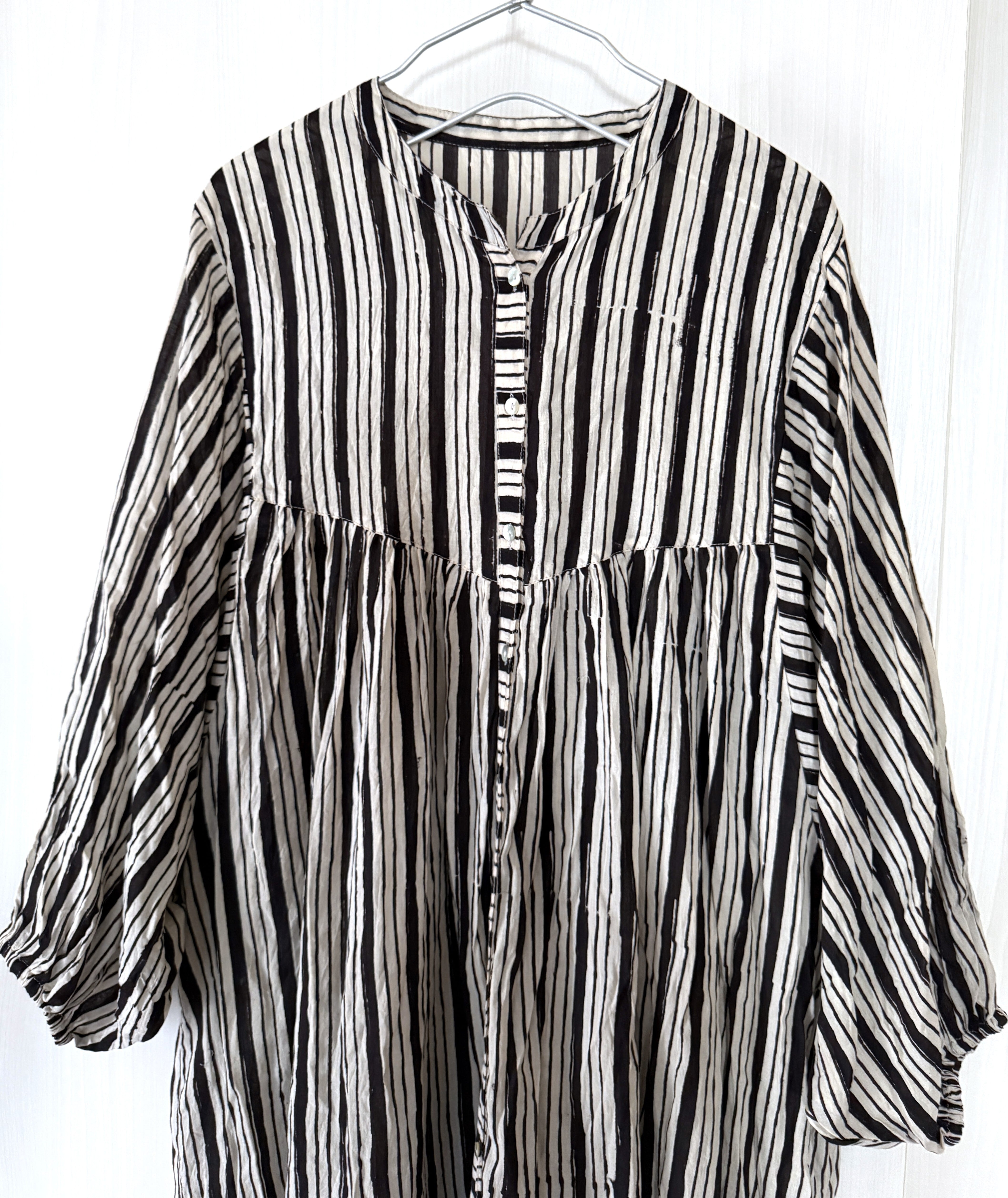Block Print Cotton TRIP ワンピース◎太細mixストライプ