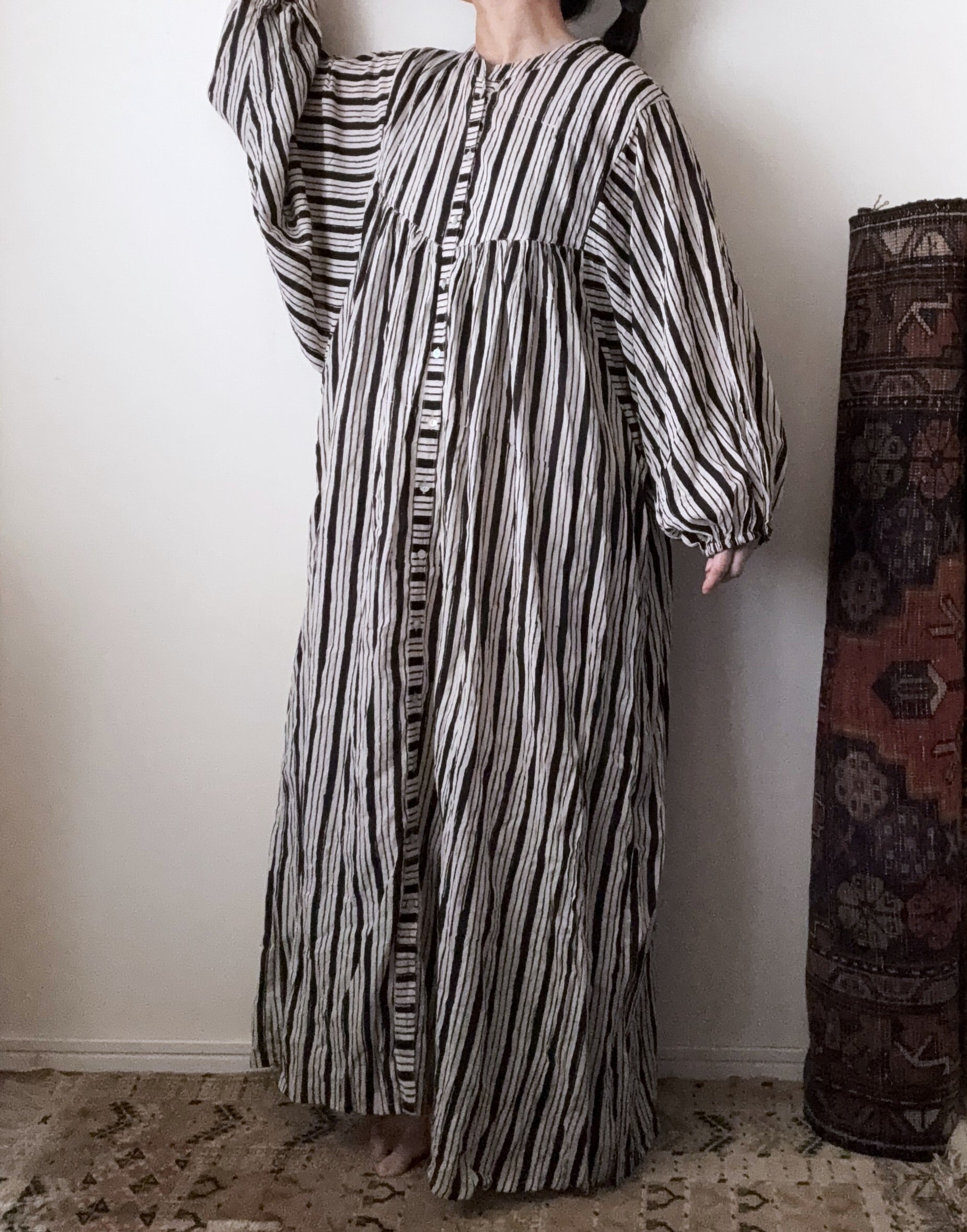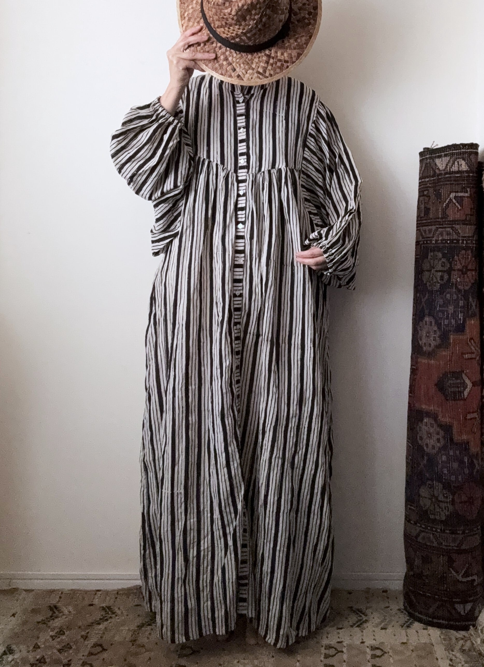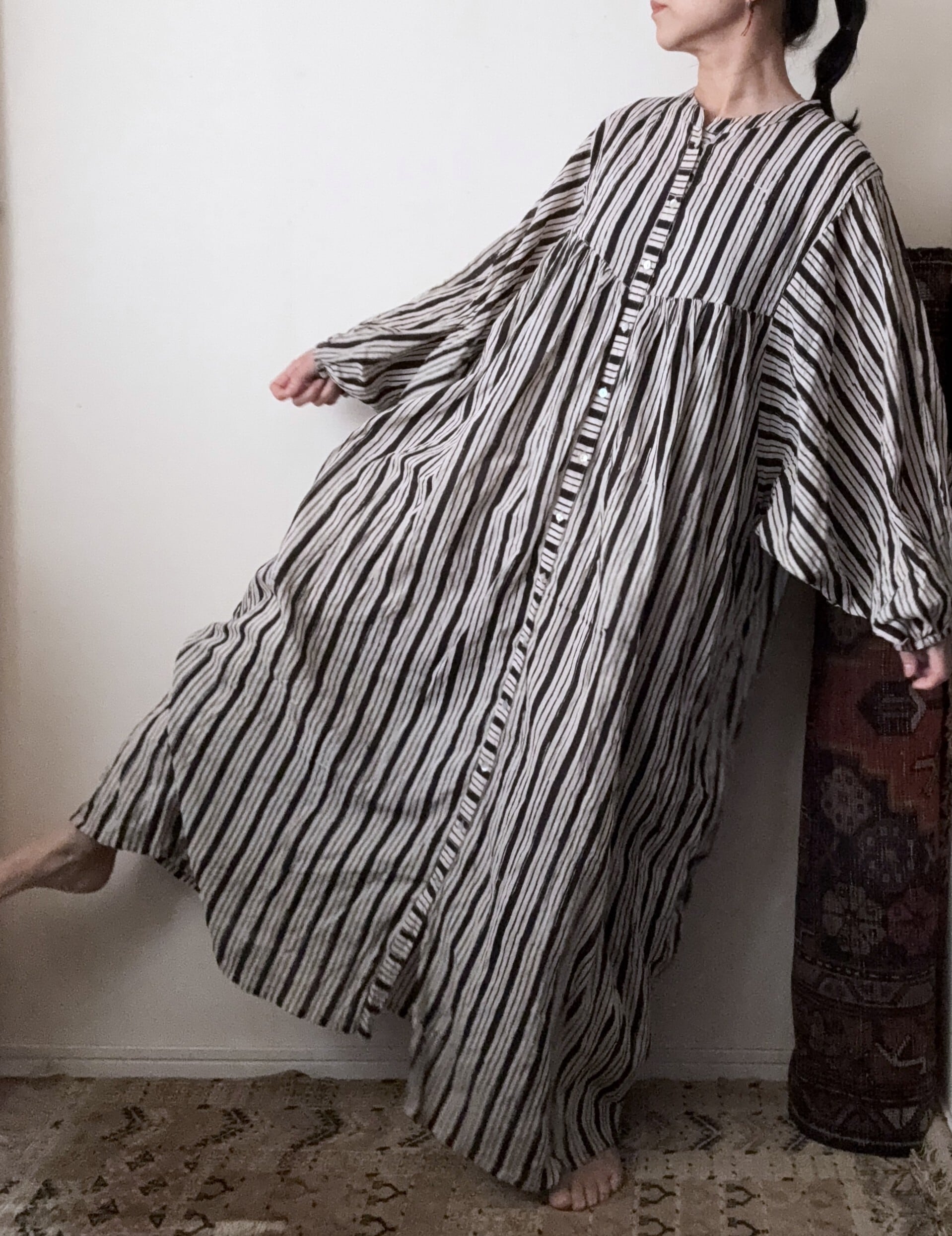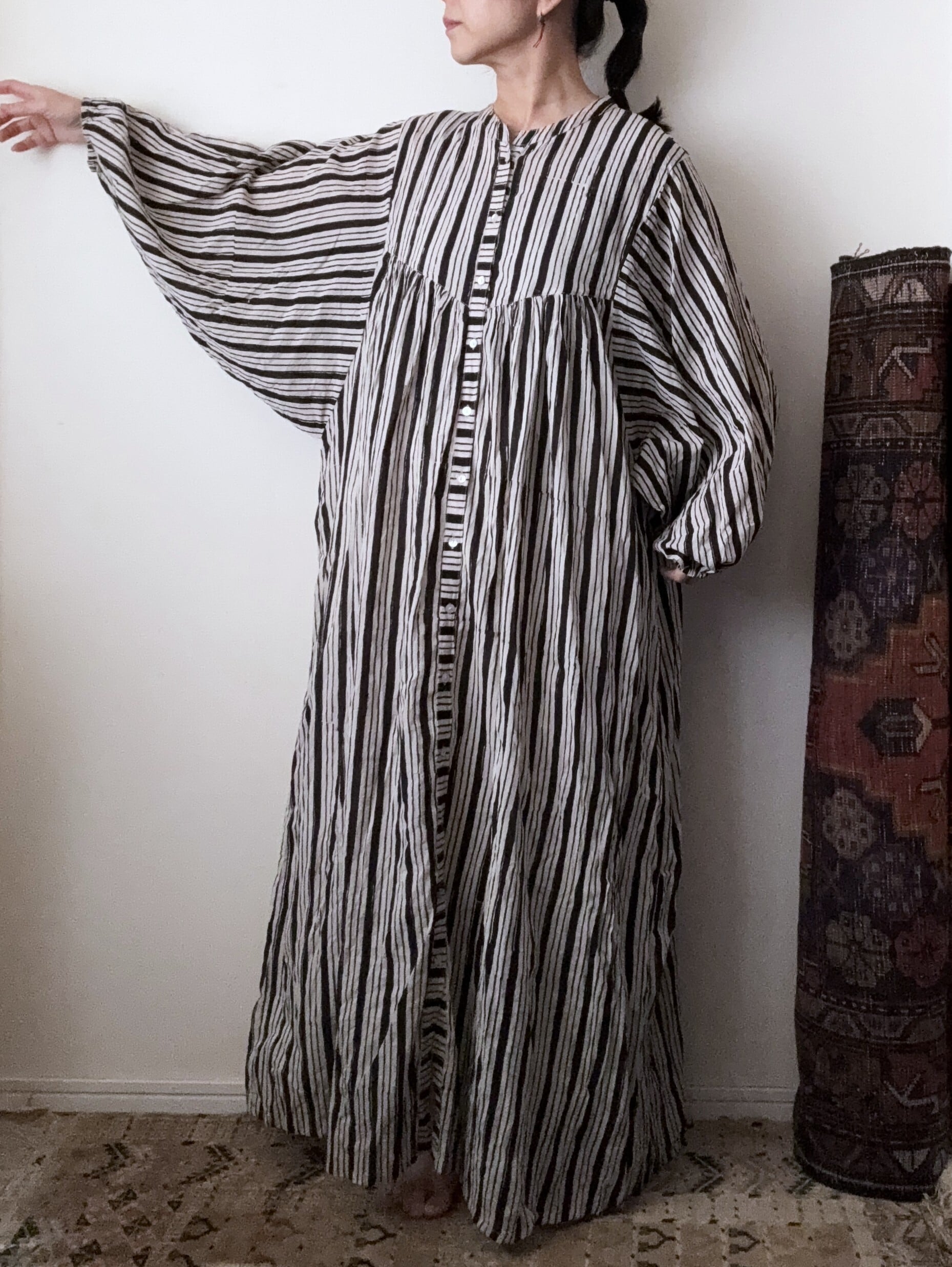 Block Print Cotton TRIP ワンピース◎太細mixストライプ
