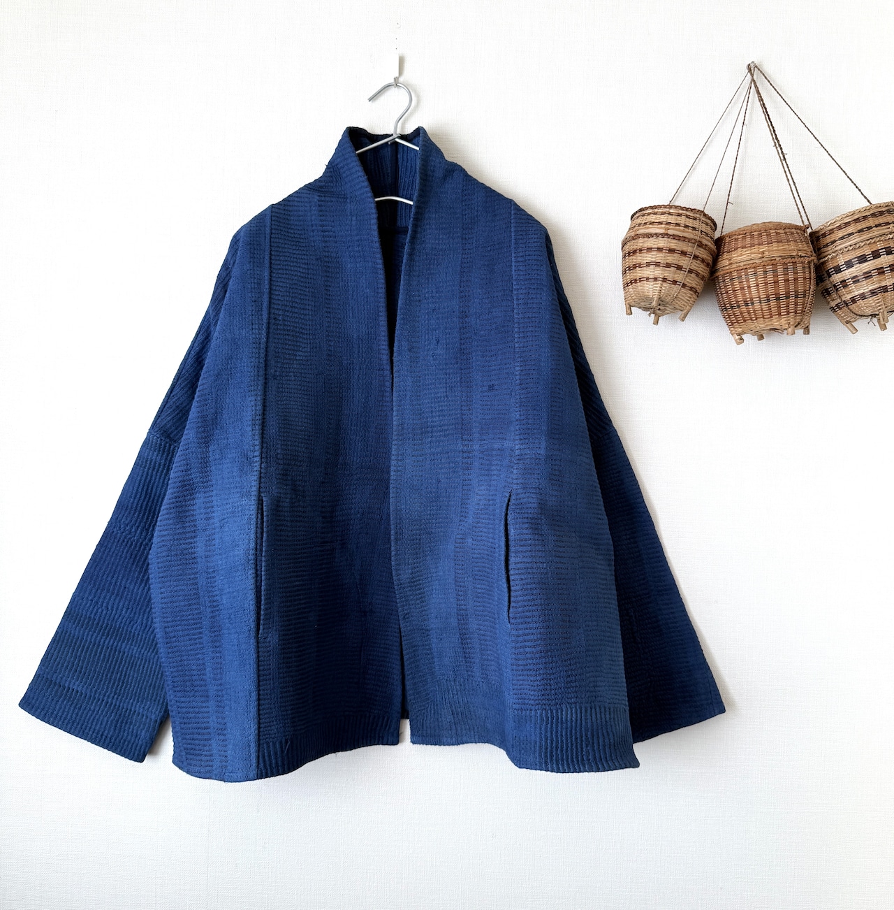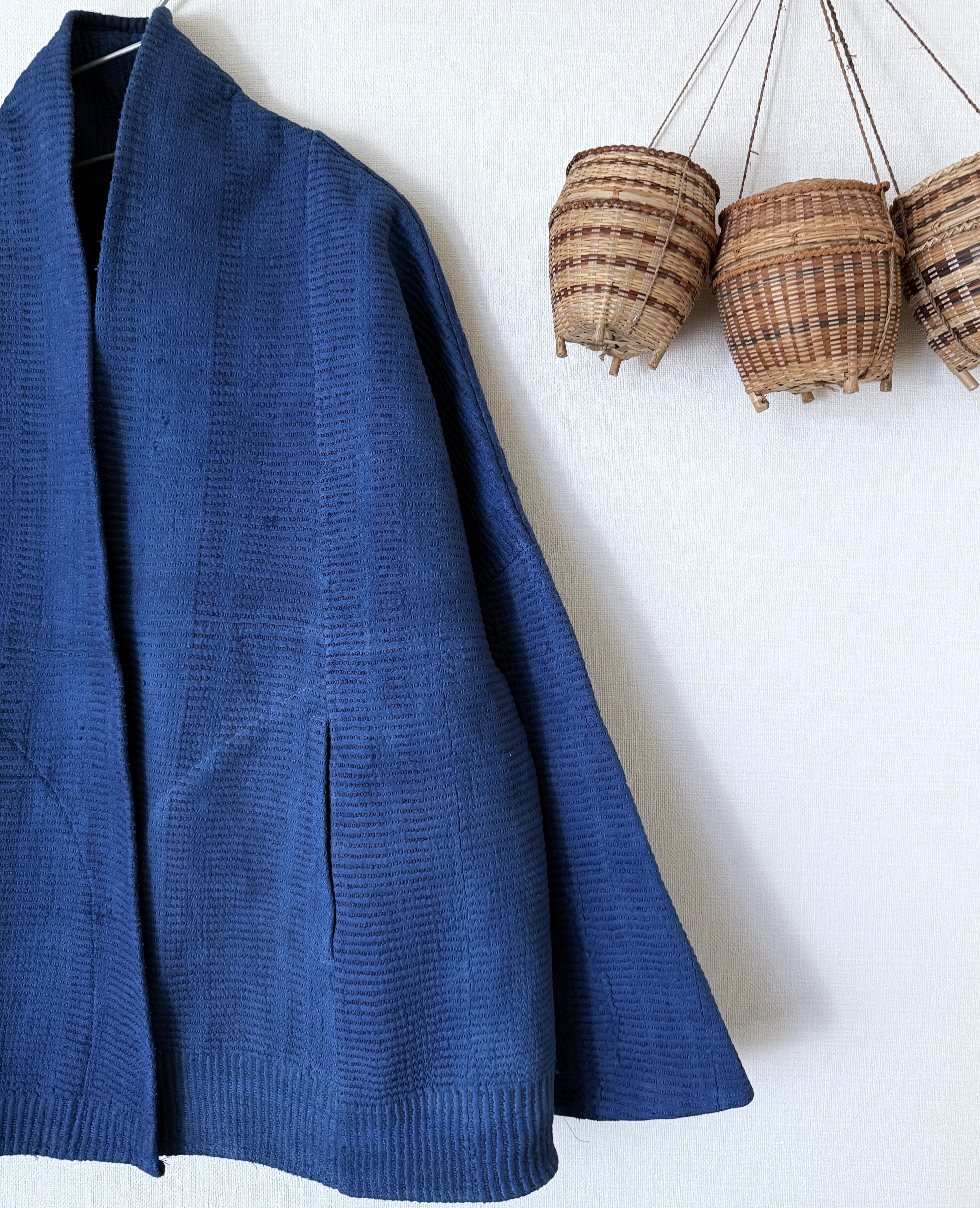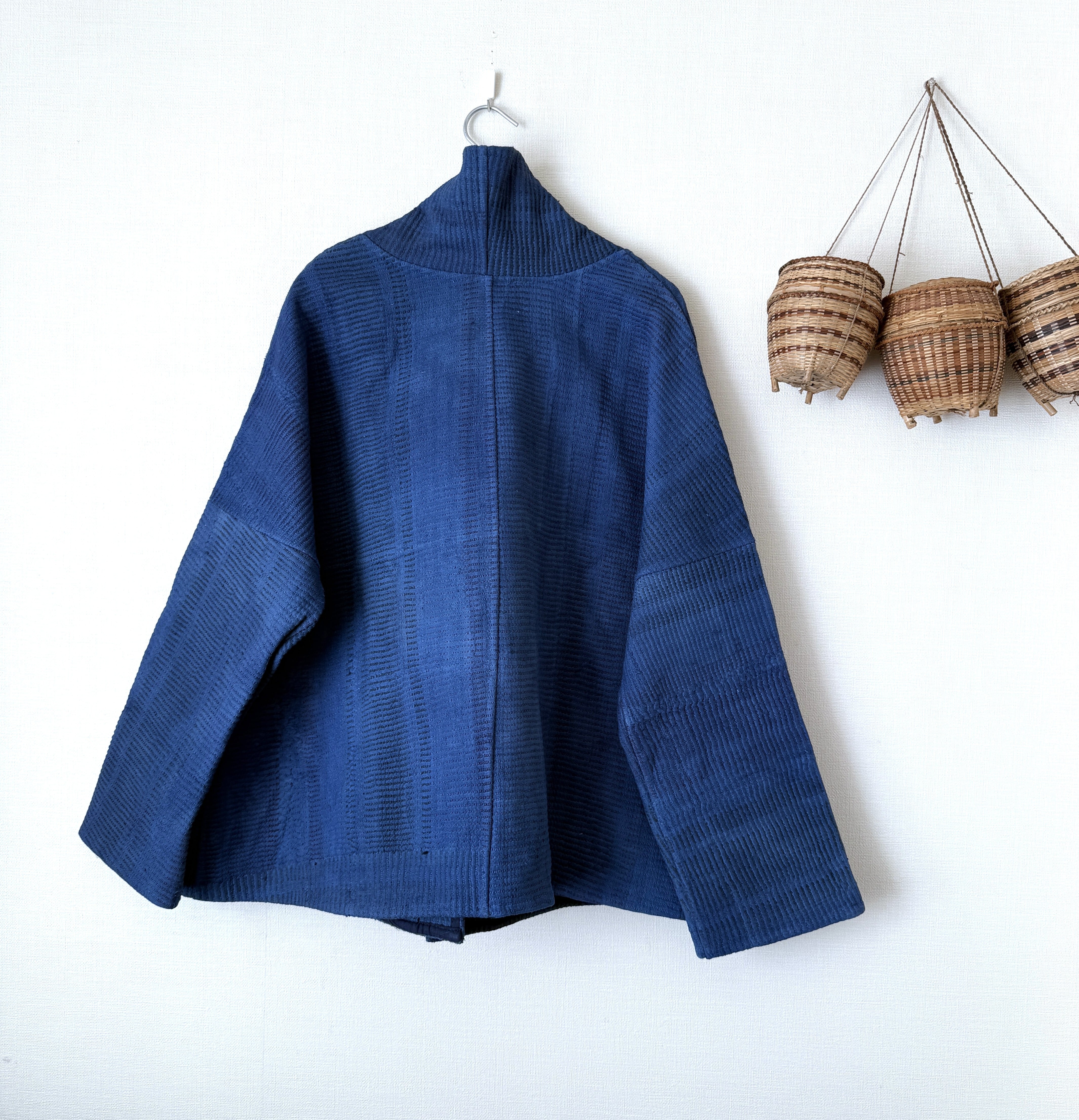カンタ布を藍染して作った1点ものジャケット
