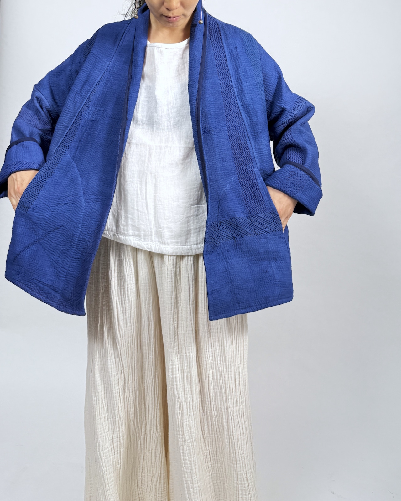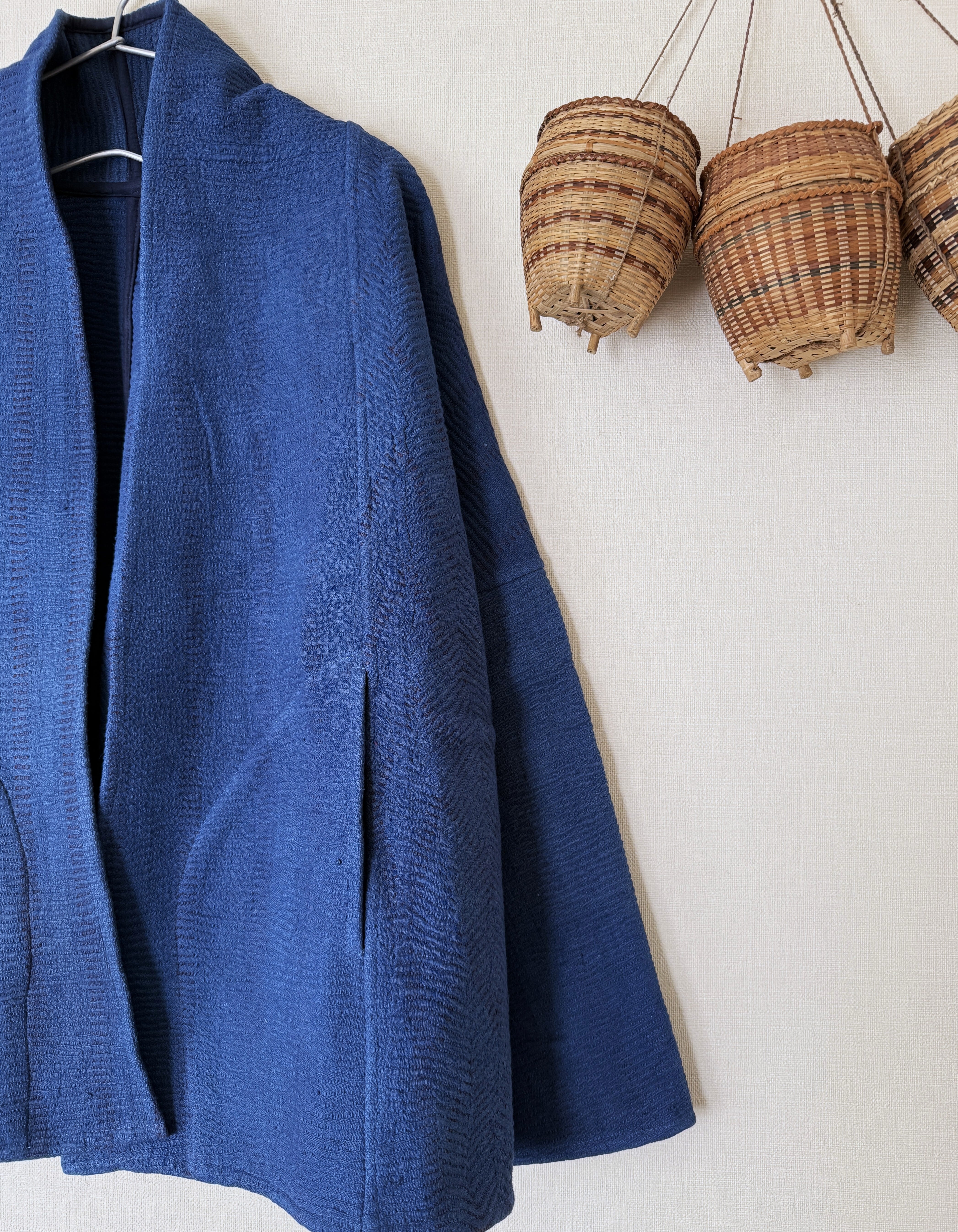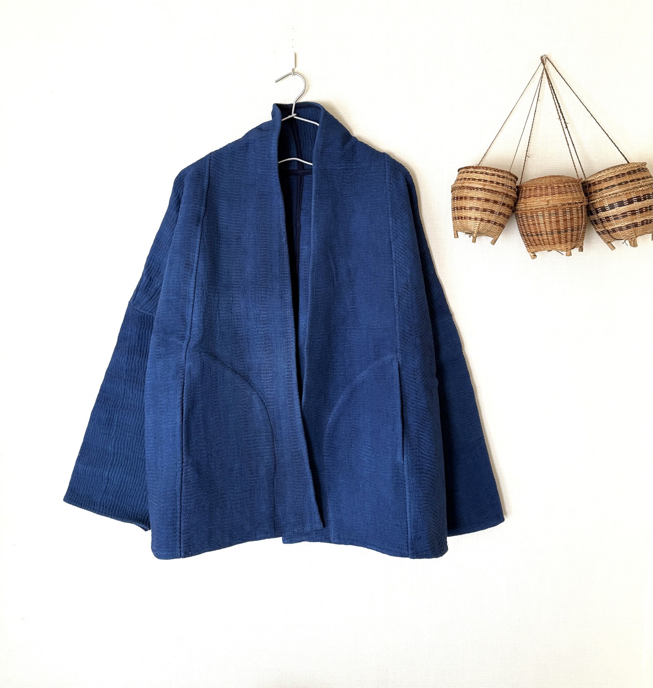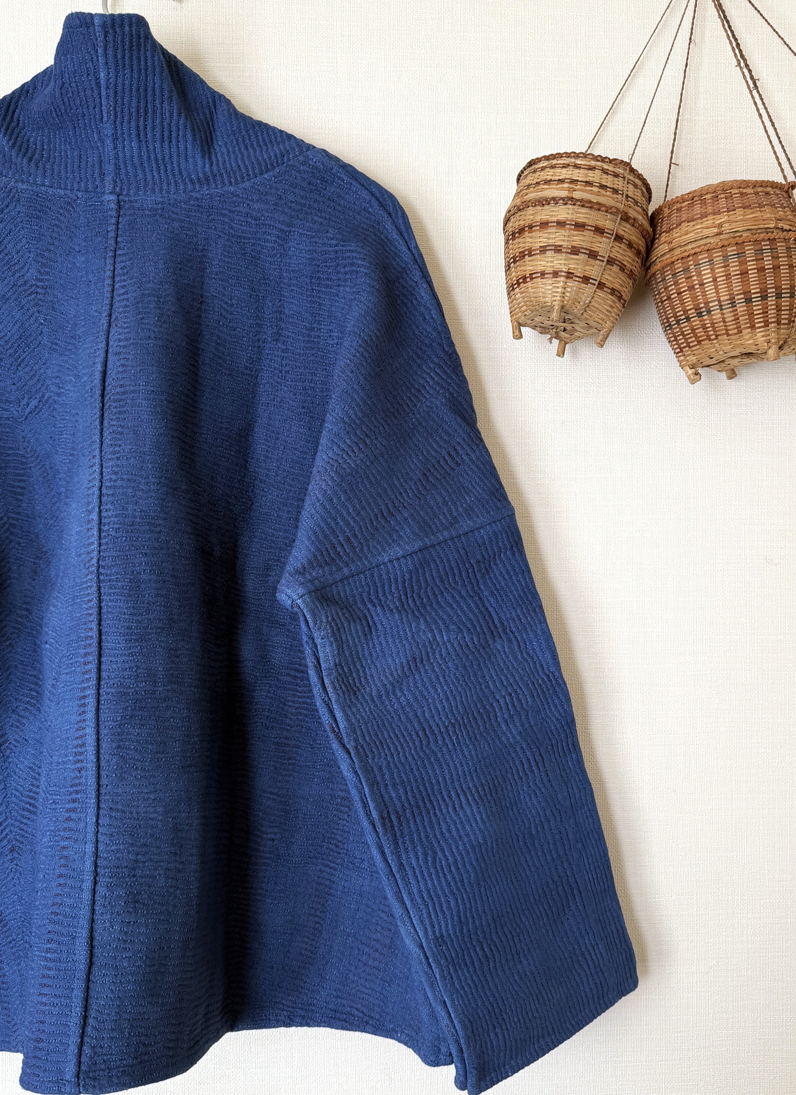 カンタ布を藍染して作った1点ものジャケット