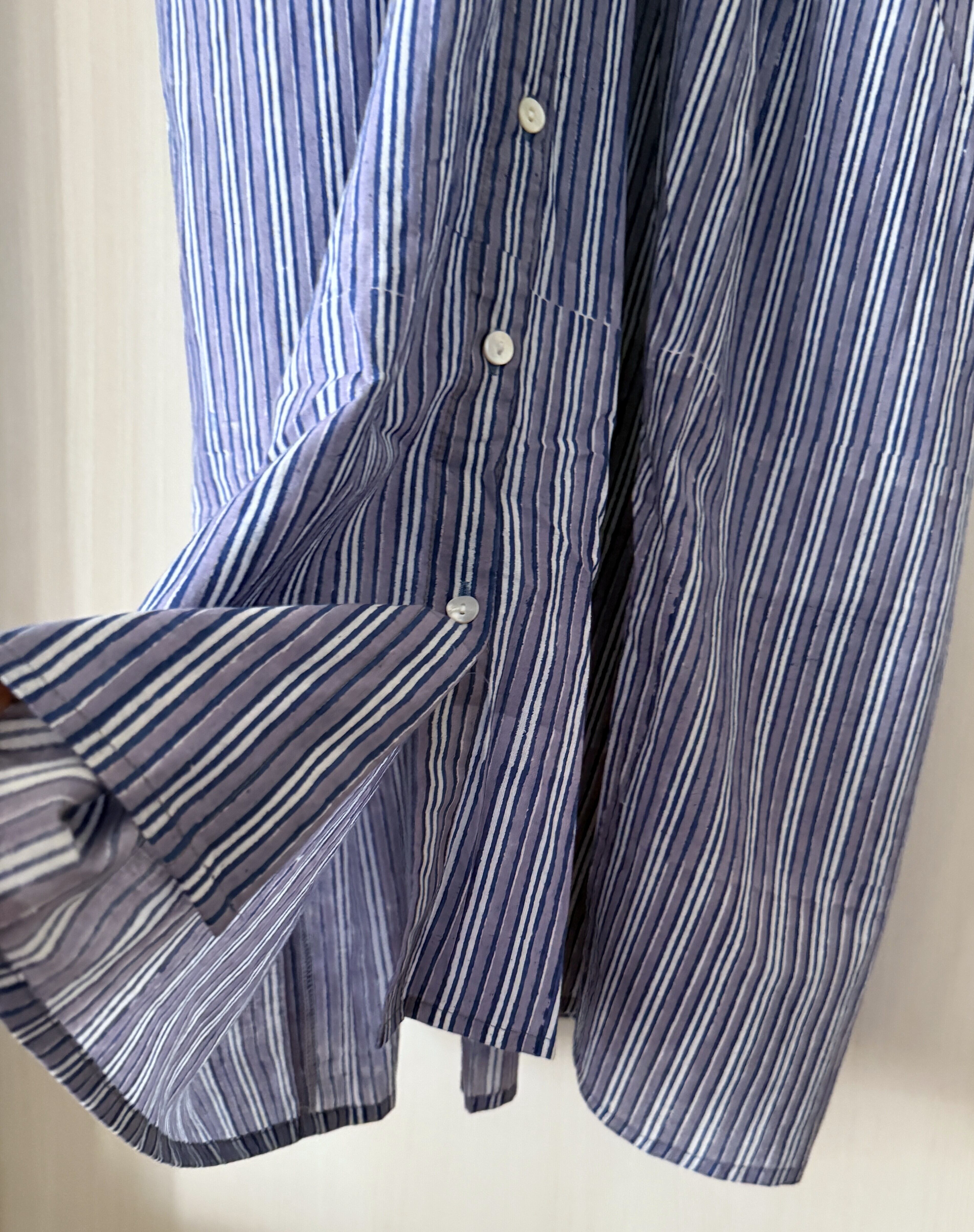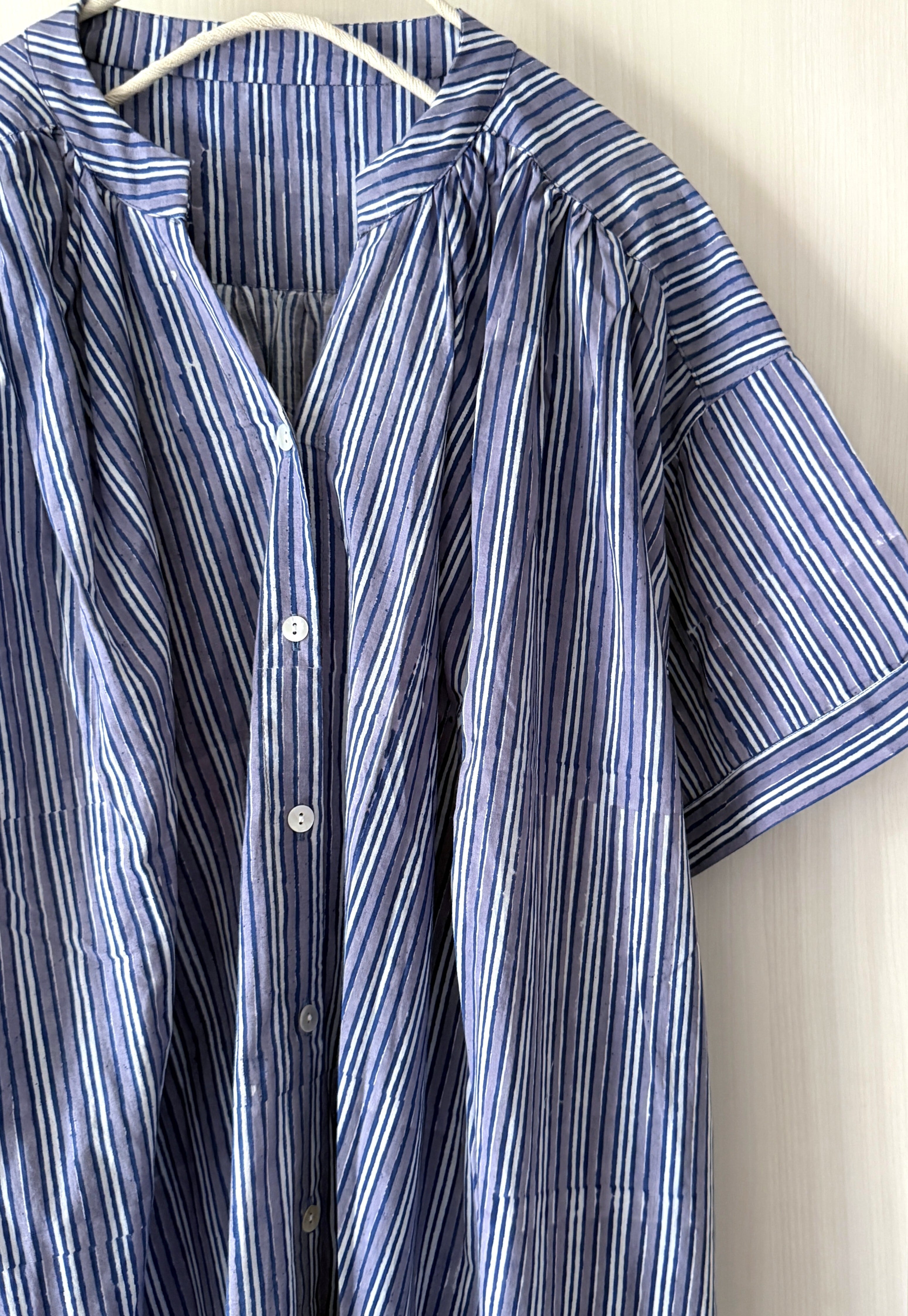 全4色◎Block Print Cotton wide ワンピース◎BLUE ストライプ