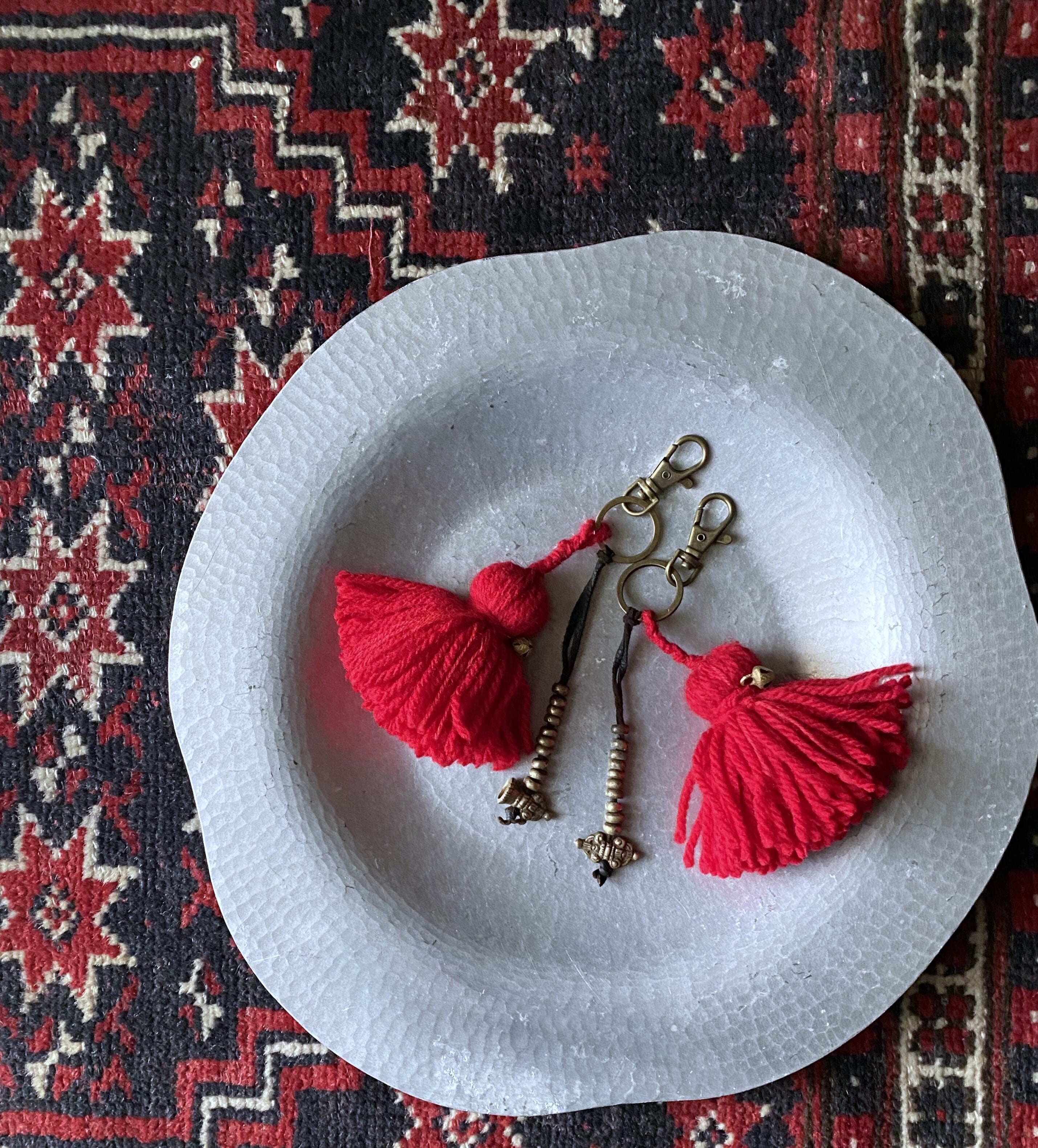 真っ赤な毛糸でボリューミーなタッセルを作り