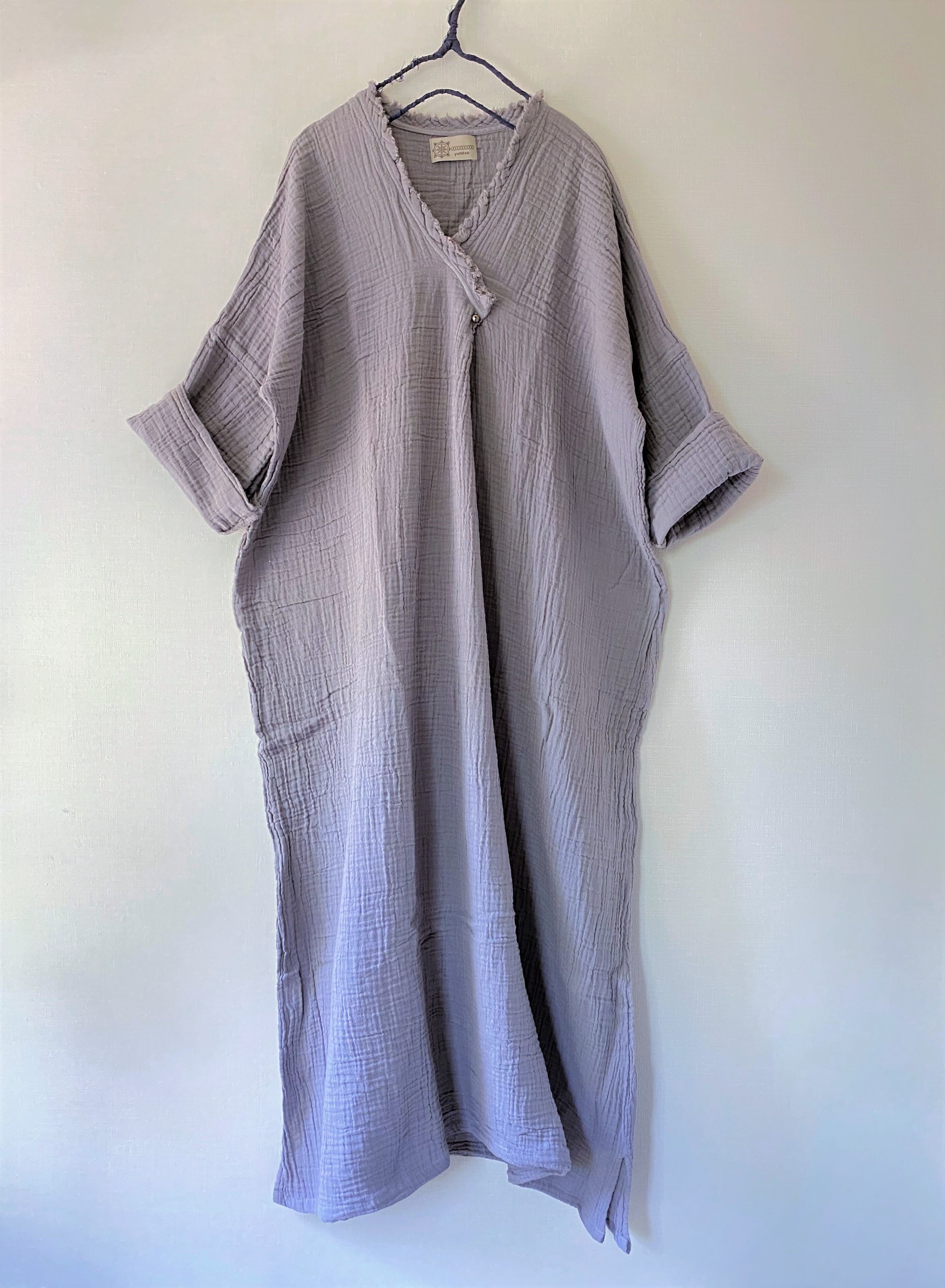 Lポケットあり◎ダブルガーゼワンピース◎Light Gray