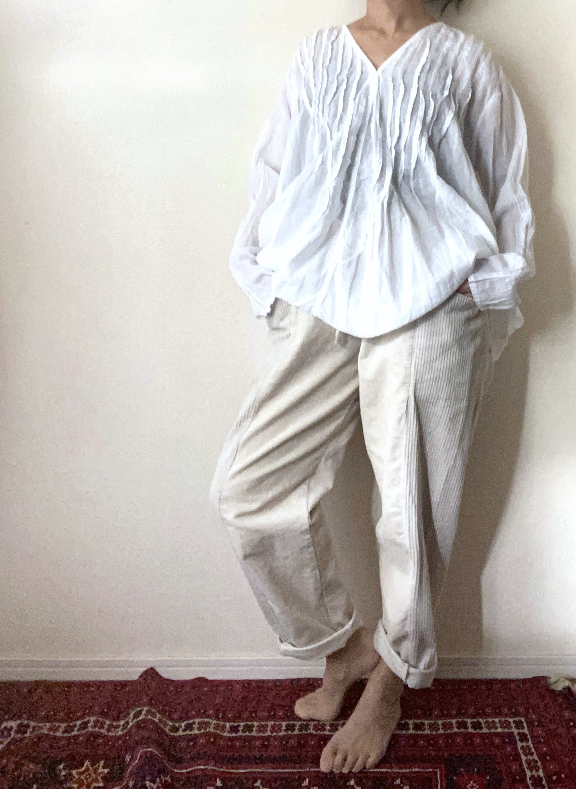 パンツに前だけインしてふわっとさせても◎